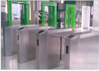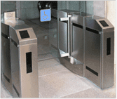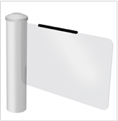 The Drop Arm Barrier controls pedestrian access between public and secure areas. The barrier lane uses an array of optical sensors to determine the number and direction of persons passing through the lane. The barrier uses a drop arm to block the pedestrian’s path. The barrier is able to authorize passage to persons presenting a valid electronic security card (or other authentication device). The barrier can integrate with the building access control system.